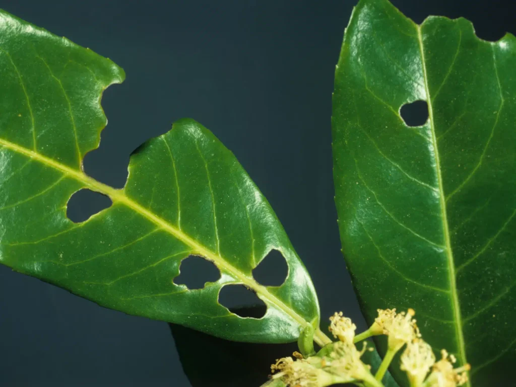 یکی از شایعترین دلایل سوراخ شدن برگها، حملهی آفات برگخوار است.