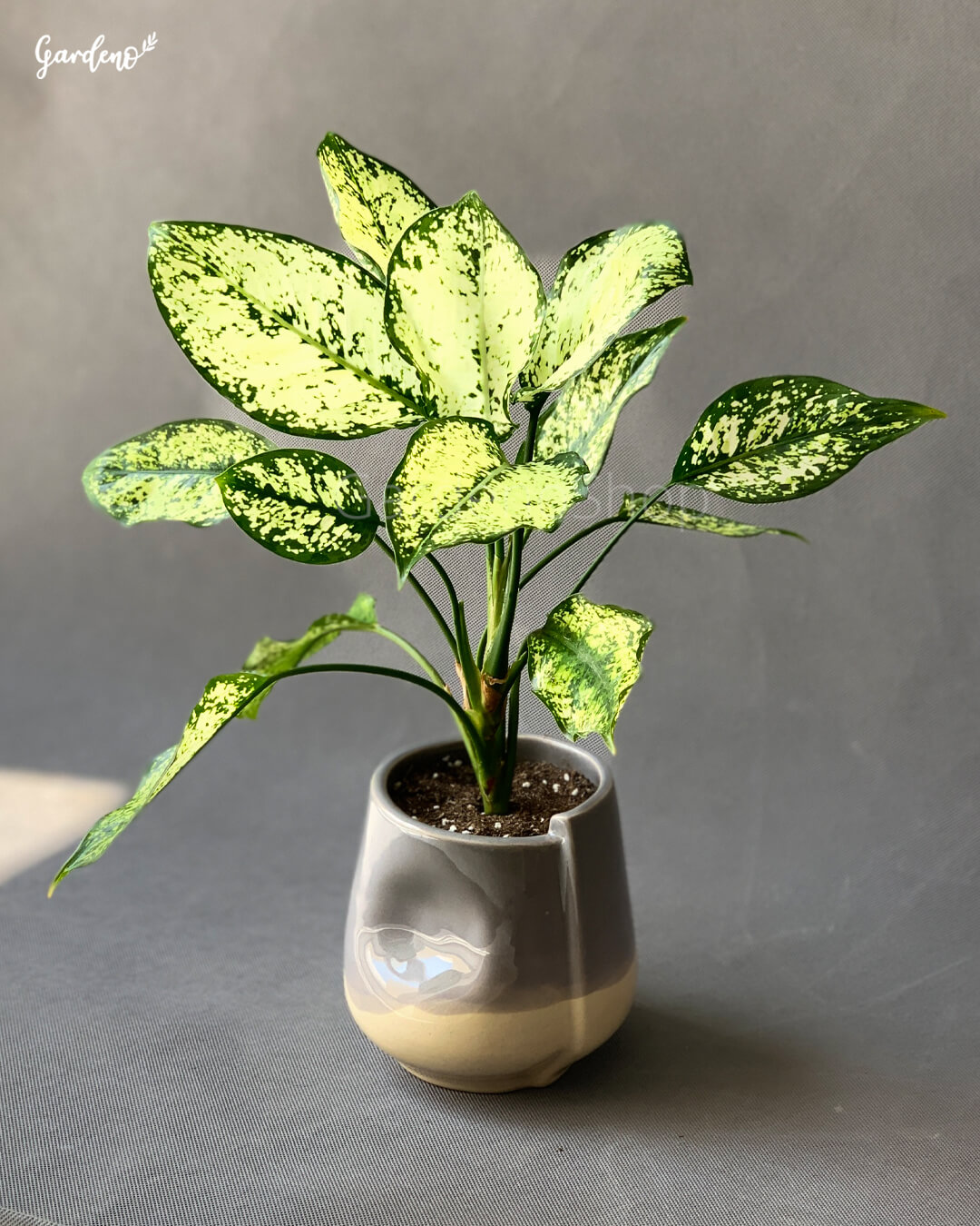 مجموعه گلخانه گاردنو آگلونما برفی با گلدان سرامیکی آلاله را که جزو گیاهان کلکسیونی و کمیاب است، به شما معرفی میکند. برگ های این گیاه رگههای سفید رنگی دارد و ساقههای آن کوتاه است. برگ های گیاه آگلونما نرم و براق است و انتهای برگ گیاه اگلونما کشیده میباشد.