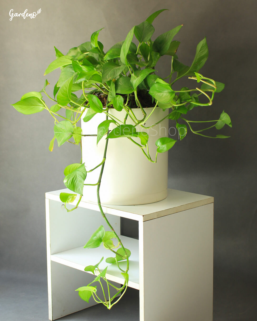 مجموعه گلخانه گاردنو پتوس آویز با گلدان پلیمری را که جزو گیاهان با نگهداری ساده و مناسب افراد مبتدی است، به شما معرفی میکند. برگ های این گیاه رگههای سفید و ابلقی دارد و ساقههای آن بلند است. برگ های گیاه پوتوس نرم و قاشقی شکل است. گیاه پوتوس تصفیه کننده عالی است و محیط منازل را از مواد آلاینده پاک میکند.