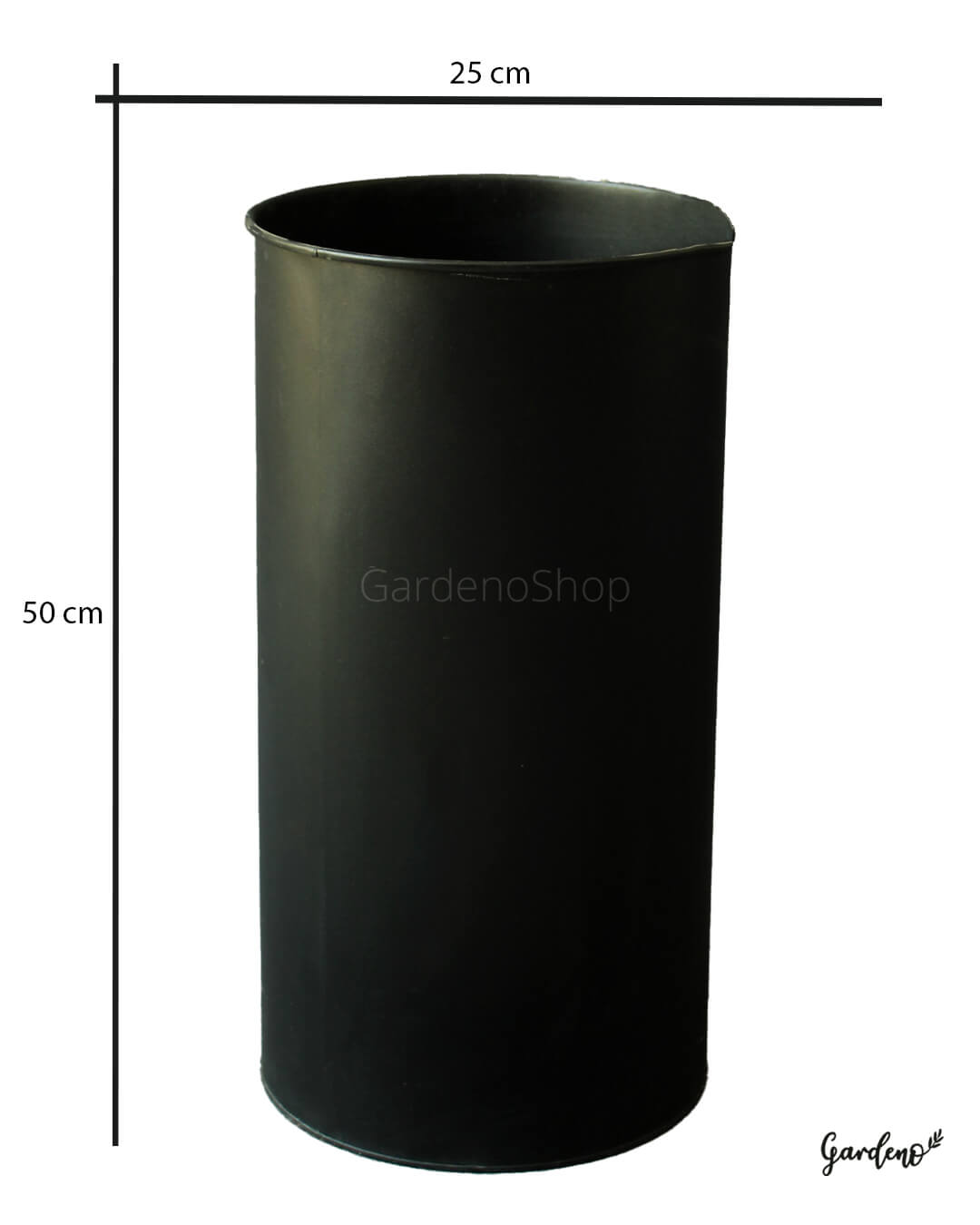 گلدان فلزی استوانه با ارتفاع ۵۰ سانتمیتر و قطر دهانه ۲۵ سانتیمتر در مجموعه گلخانه گاردنو موجود است. این گلدان دارای سوراخ زهکشی می‌باشند و آب اضافی از آنها تخلیه می‌شود.